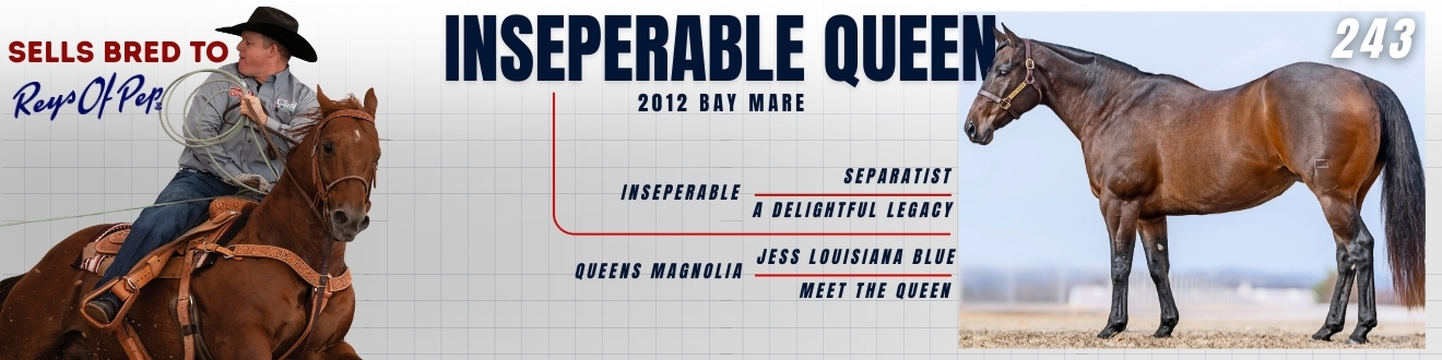 Inseperable Queen is noted for consistency in both production and type. While her foals are still developing, multiple offspring have been retained and placed into training, reflecting confidence in her ability to produce competitive horses.